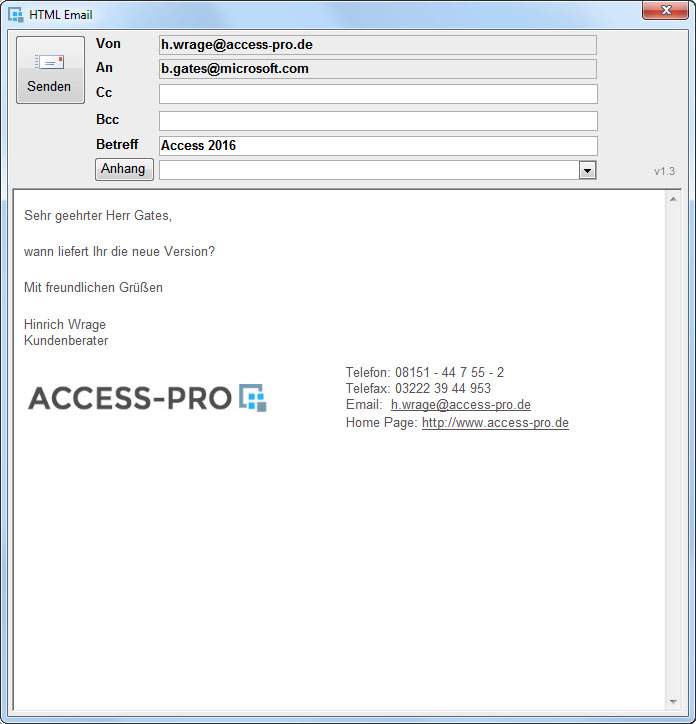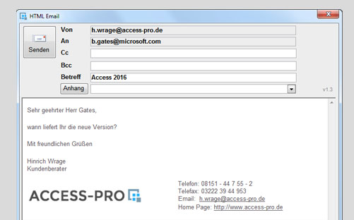 Emails in Access zu versenden ist eine große Bereicherung. Vor allem dann, wenn man Vorgänge automatisieren will. Die Ausgabe von Berichten in HTML eröffnet viele neue Möglichkeiten.