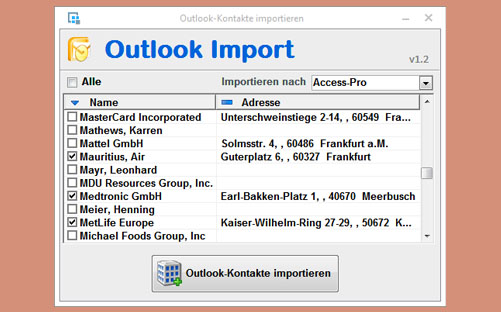 Outlook ist sehr beliebt und Daten sollten niemals doppelt eingegeben werden. Wir verbinden Ihre Access-Daten mit Outlook. Kontake importieren, exportieren oder synchronisieren.